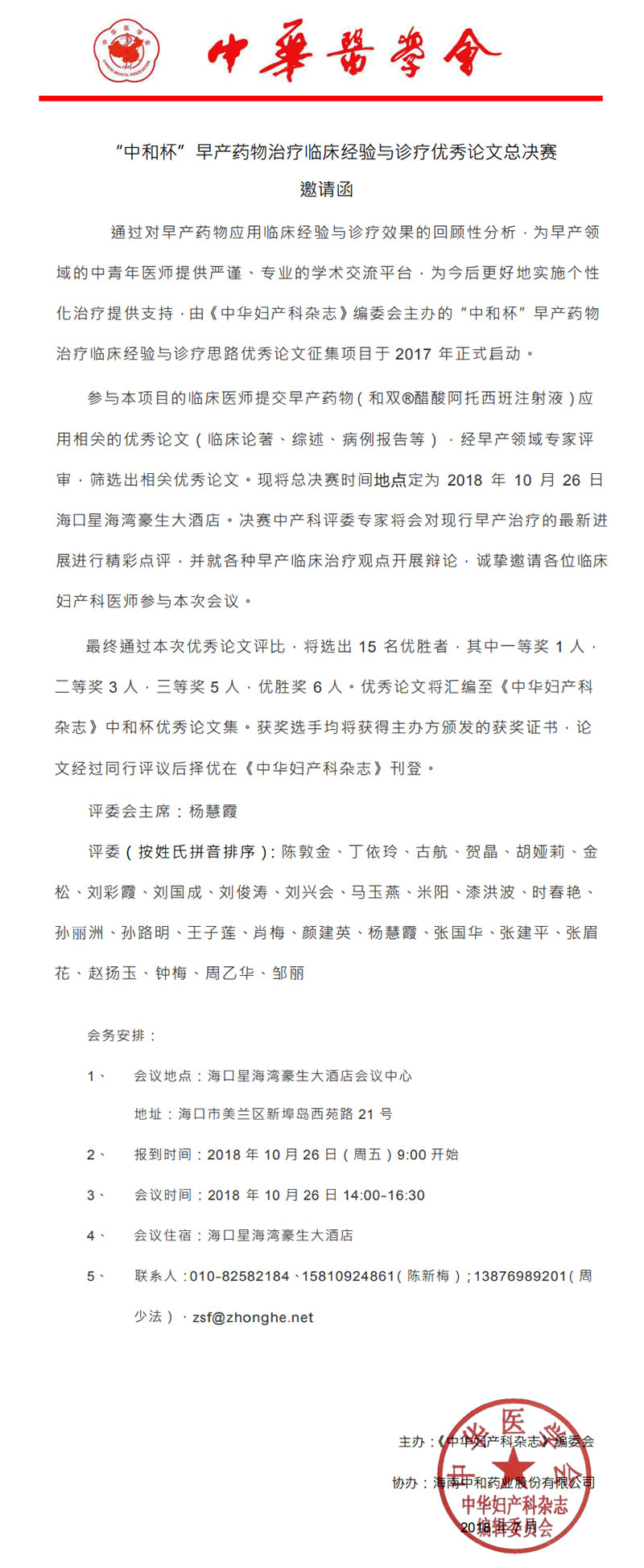 “中和杯”早產(chǎn)藥物治療臨床經(jīng)驗(yàn)與診療優(yōu)秀論文總決賽邀請(qǐng)函
