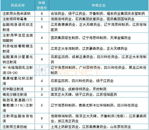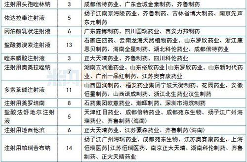 正在審評的注射劑一致性評價補充申請情況(3家及以上)