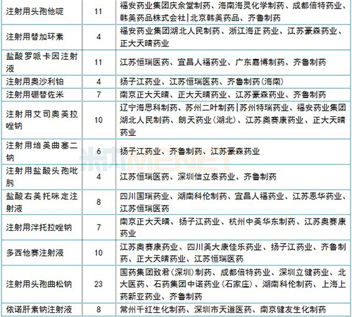 米內(nèi)網(wǎng)數(shù)據(jù)顯示,目前一致性評價補充申請正在審評的注射劑品種有125個,涉及受理號超過400個,其中,注射用頭孢曲松鈉、注射用帕瑞昔布鈉、鹽酸氨溴索注射液、鹽酸羅哌卡因注射液等37個品種申報企業(yè)有3家及以上,注射用頭孢曲松鈉和注射用帕瑞昔布鈉的申報企業(yè)數(shù)量最多,涉及江蘇恒瑞醫(yī)藥、齊魯制藥、揚子江廣州海瑞藥業(yè)、江蘇奧賽康藥業(yè)、湖南科倫制藥、正大天晴藥業(yè)等企業(yè)。