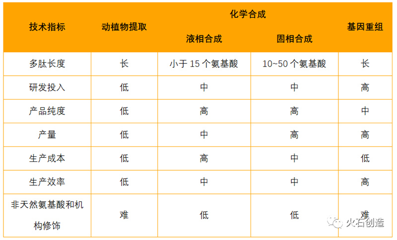 1.從動(dòng)植物中提取,是先用物理、化學(xué)技術(shù)對(duì)動(dòng)植物組織進(jìn)行初步處理,然后經(jīng)過(guò)酶解或其他消解技術(shù)降解蛋白前體,最后利用溶劑將多肽進(jìn)行提取。但由于動(dòng)植物體內(nèi)活性多肽物質(zhì)含量很低,提取純度較低,且存在潛在的生物安全風(fēng)險(xiǎn),限制了在臨床上的應(yīng)用,技術(shù)正逐漸被淘汰。