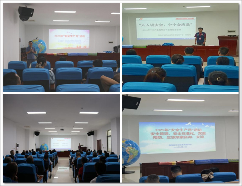 2025年6月是第24個全國“安全生產月”,為了深入貫徹落實安全生產方針政策,切實增強全員安全意識和應急能力,海南中和藥業(yè)股份有限公司圍繞“人人講安全、個個會應急——查找身邊安全隱患”主題,精心組織、周密部署全員安全培訓與應急演練系列活動,從生產一線員工到公司管理層,全員參與,共同奏響安全生產的主旋律。